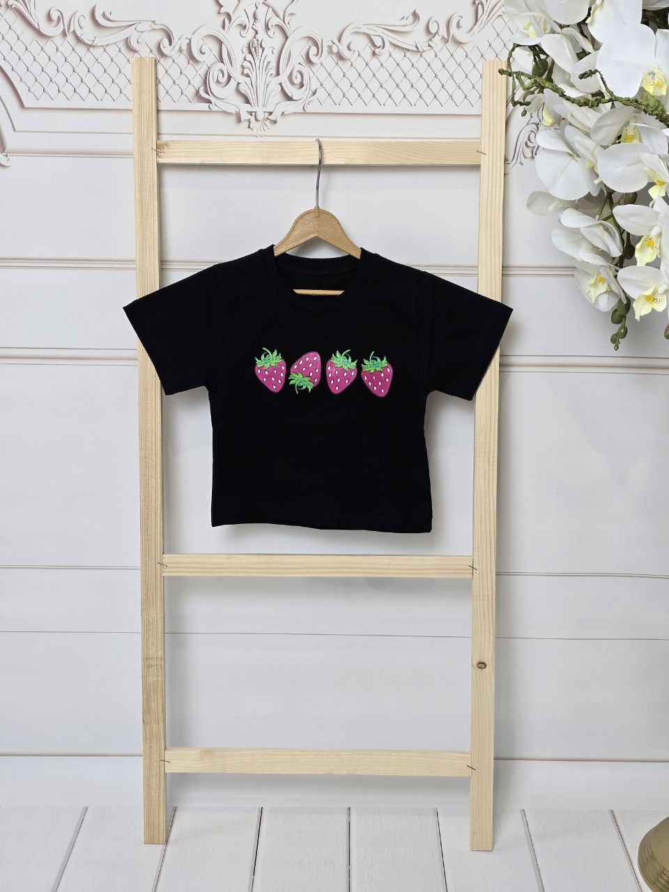 تیشرت مشکی دخترانه طرح توت فرنگی۱۸۰٬۰۰۰ تومان